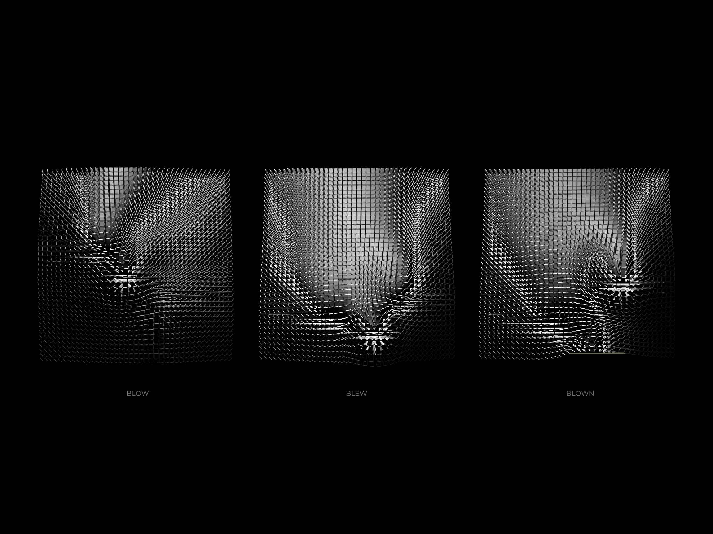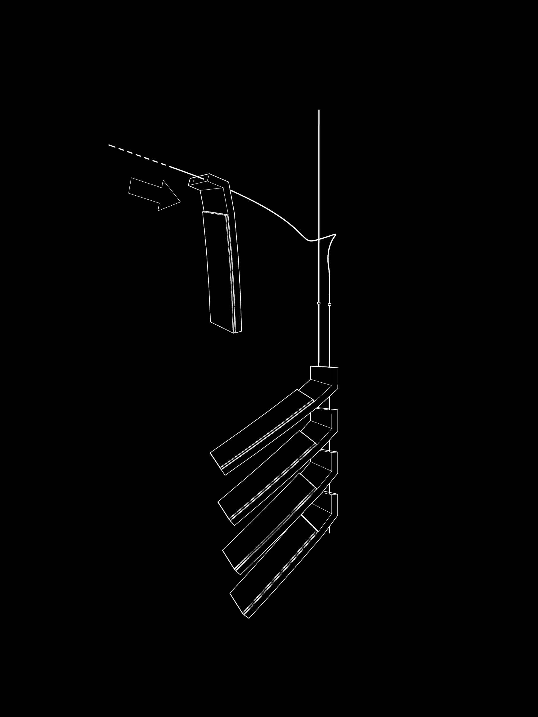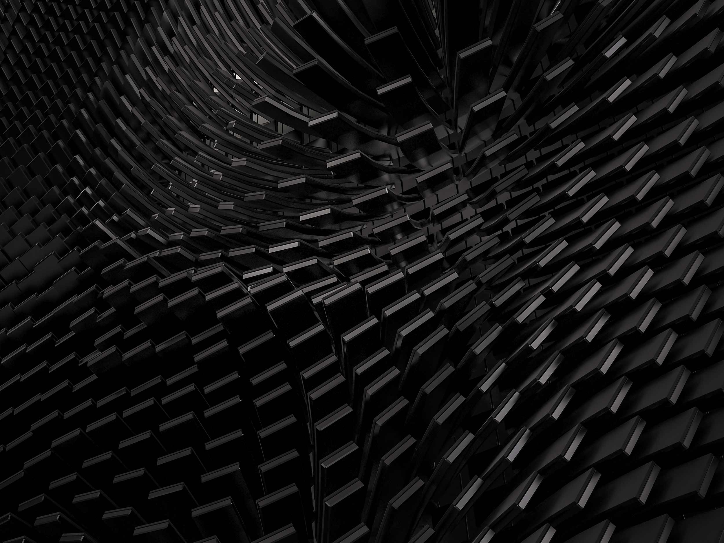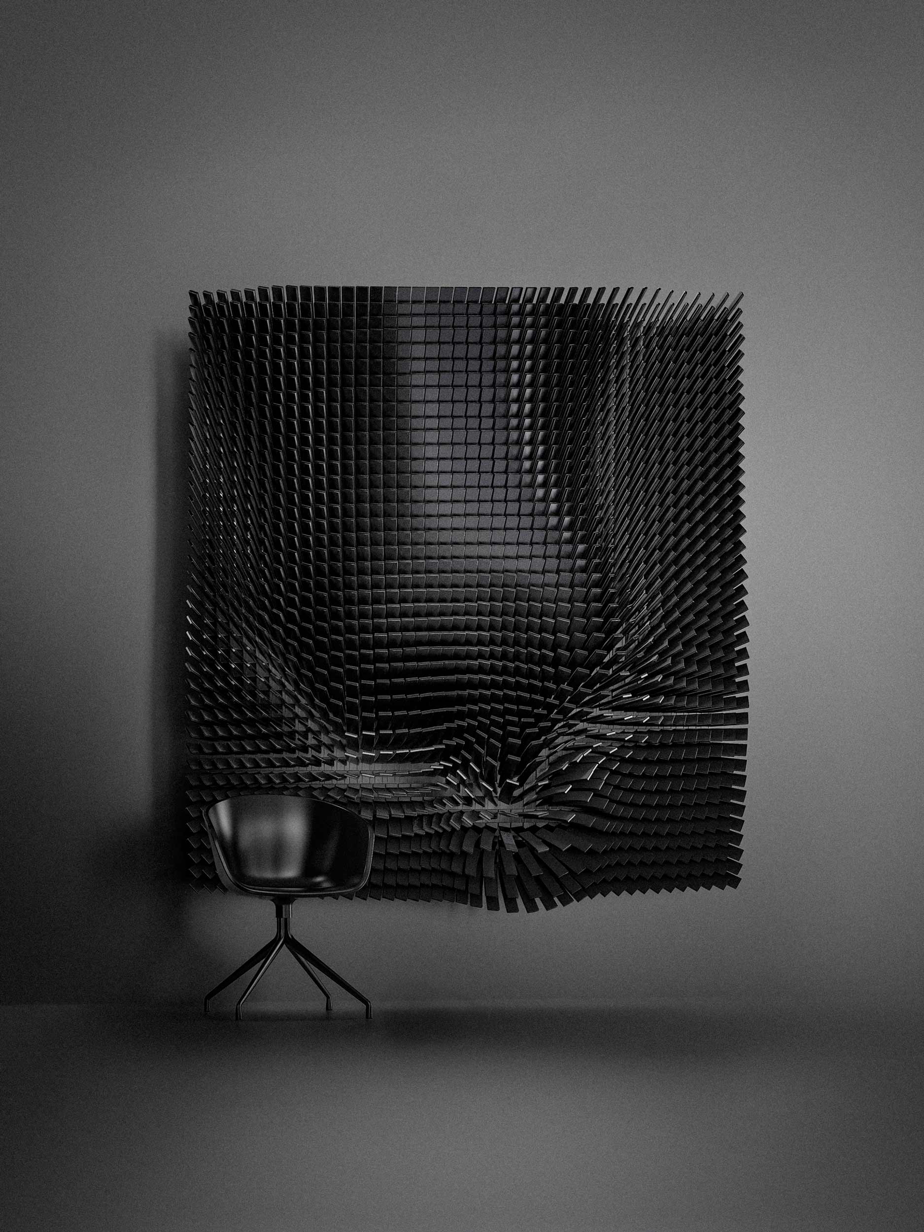 Detail of Blow, Blew, Blown panel showing layered Corian Deep Colour scales